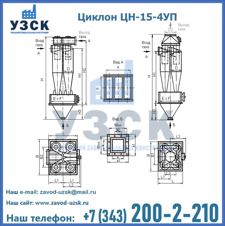 Завод «УЗСК» в Березниках предлагает большой выбор циклонов ЦН-15-900×4УП и прочих устройств, полностью укомплектованных и готовых к эксплуатации. Мы гарантируем соответствие оборудования всем требованиям ГОСТ и ТУ, износостойкость и высокую производительность предлагаемого оборудования. Уральский Завод Стальных Конструкций изготавливает и продает надежное, эффективное и производительное оборудование, имеющее длительную гарантию и большой эксплуатационный ресурс. Если требуется изготовить циклон нестандартных размеров, то такой вариант выполнения заказа тоже предусмотрен, так как предприятие имеет собственные производственные площади и надежных поставщиков. На все поставляемое или производимое оборудование имеются чертежи и прочая техническая документация. Заказать и купить циклоны или прочее оборудование высокого качества и по доступной цене можно через наш сайт или по указанному в разделе «Контакты» телефону.