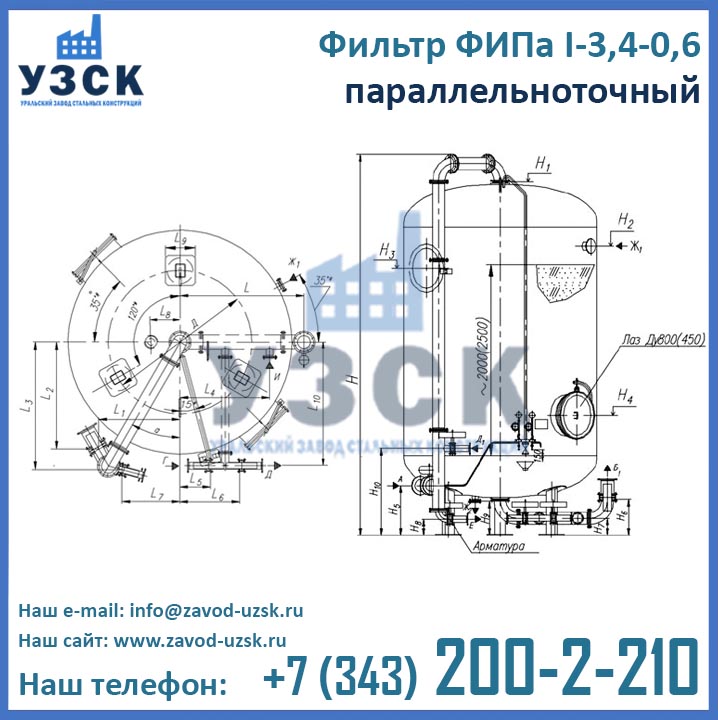 Производитель фильтров ФИПа параллельно-точных завод УЗСК предлагает два варианта комплектации ФИПаI 3,4-0,6 в Березниках: