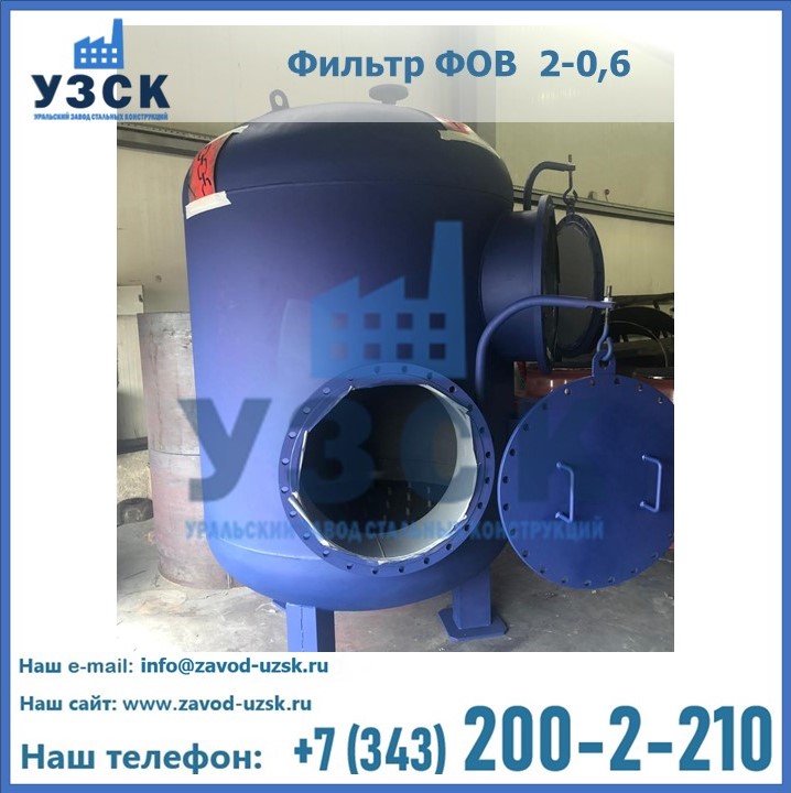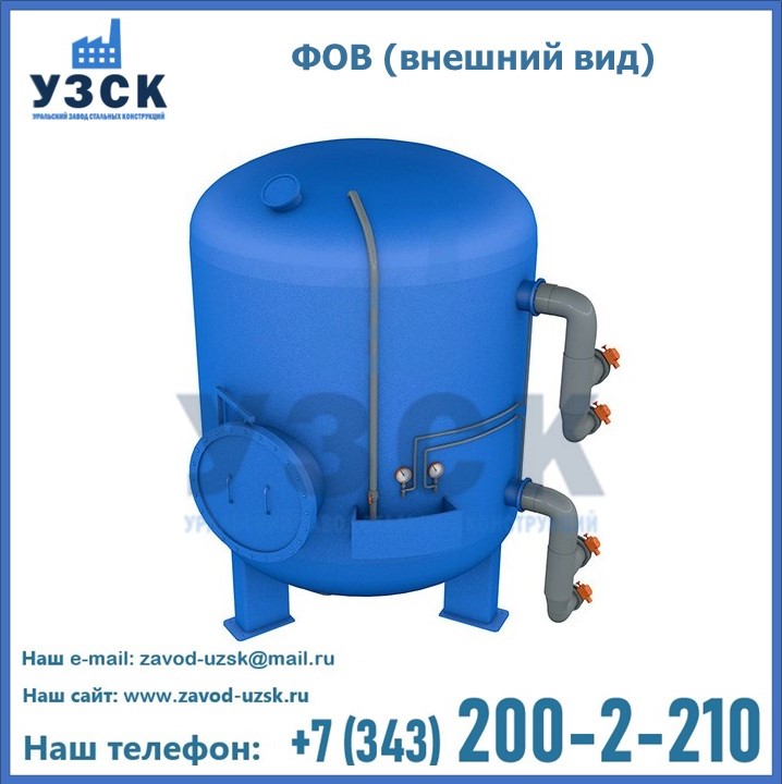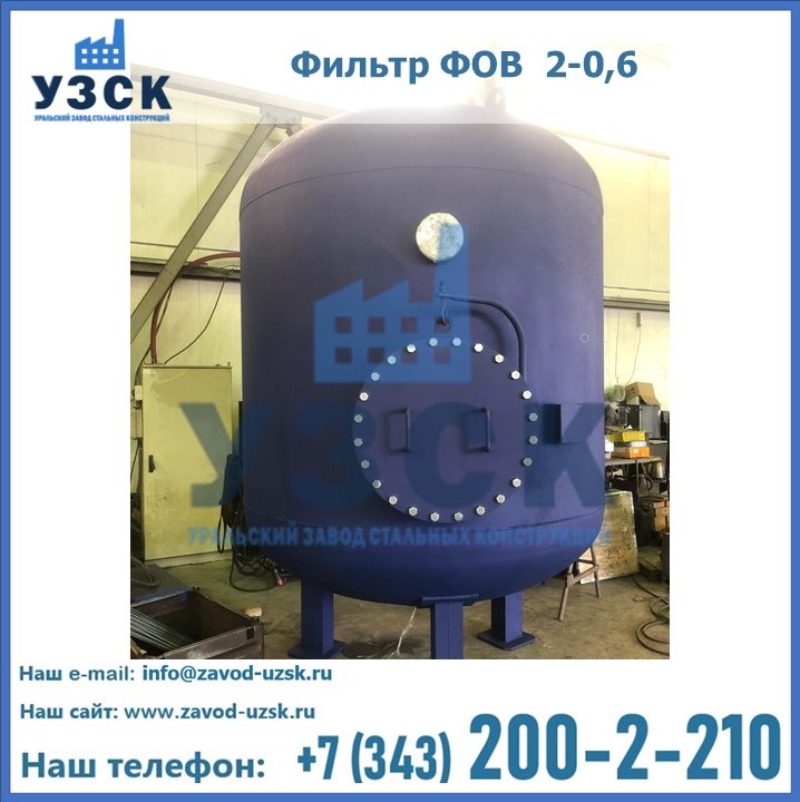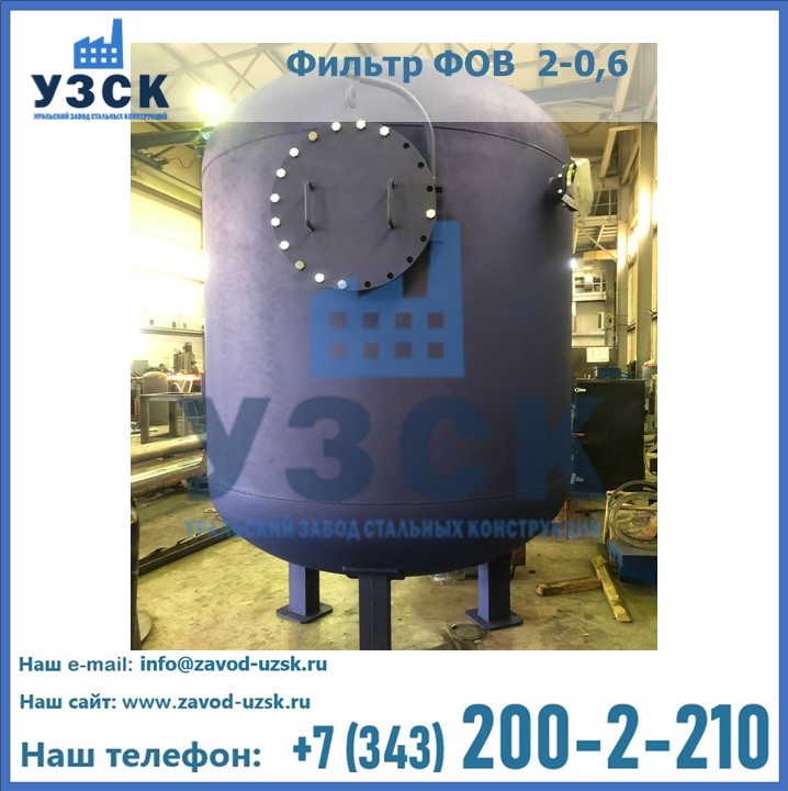 Удаление взвешенных веществ различного уровня дисперсности из рабочих жидкостей эффективно проводит фильтр осветлительный типа ФОВ (скорый или механический) — вертикально-цилиндрической формы установка, разработанная для систем водоподготовки различного класса. Оборудование представляет собой однокамерный агрегат для очистки воды рекомендованный для применения на станциях очистки стоков, в коммунальных котельных, на ТЭЦ, в промышленных отопительных системах и пр. Заказать производство ФОВ фильтров предлагает наш Уральский завод стальных конструкций в Березниках. У нас можно купить фильтрационное оборудование различного класса и типа, в том числе фильтры ФОВ из нержавеющей стали.