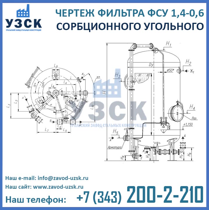 Если вы ищете фильтры ФСУ-1,4-0,6 в Березниках от изготовителя, то Вы на правильном пути! Уральский завод стальных конструкций – непосредственный производитель сорбционных фильтров ФСУ, предлагающий самые выгодные цены на ФСУ-1.4-0.6 в Березниках. По окончании процесса производства угольные фильтры проходят гидравлические испытания пробным давлением 0,9 МПа на аттестованном гидростенде, находящимся в собственности завода УЗСК. Мы гарантируем высокое качество выпускаемой продукции, и в этом уже убедились ведущие предприятия промышленного сектора России и стран ЕАЭС (см. раздел «Наши клиенты»).